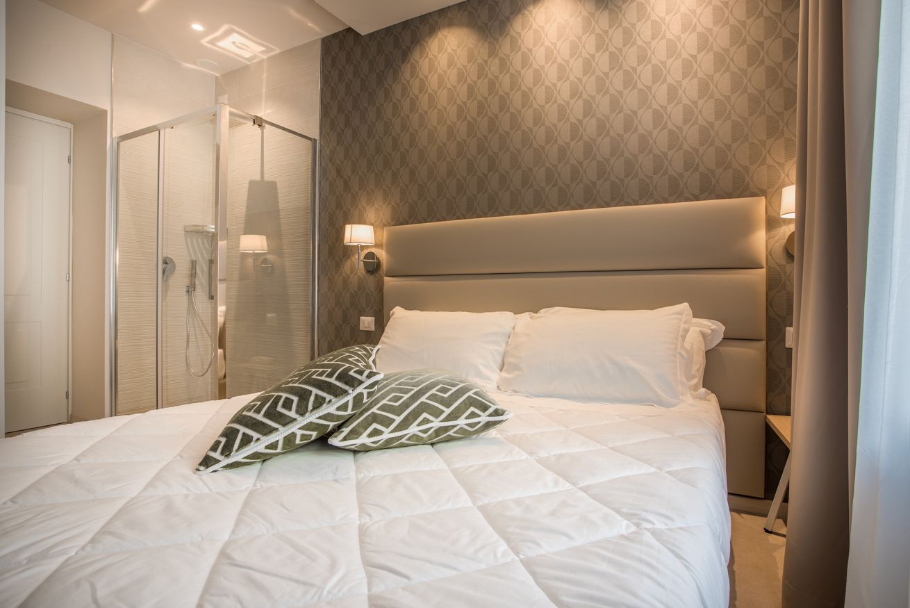 Le nostre camere Economy presentano arredi semplici e funzionali, ma non mancano tutti i principali comfort e servizi. Possibilità di usufruire di 2 letti singoli su richiesta. Tutte le camere sono insonorizzate e sono dotate di: Wi-Fi, telefono, smart Tv, cassaforte, minibar, aria condizionata, riscaldamento, armadio, bagno moderno, con doccia, lavabo, bidet, asciugacapelli, linea cortesia e set da bagno composto da telo corpo, telo viso, telo bidet. Alcune dotate di doccia a vista nella camera.